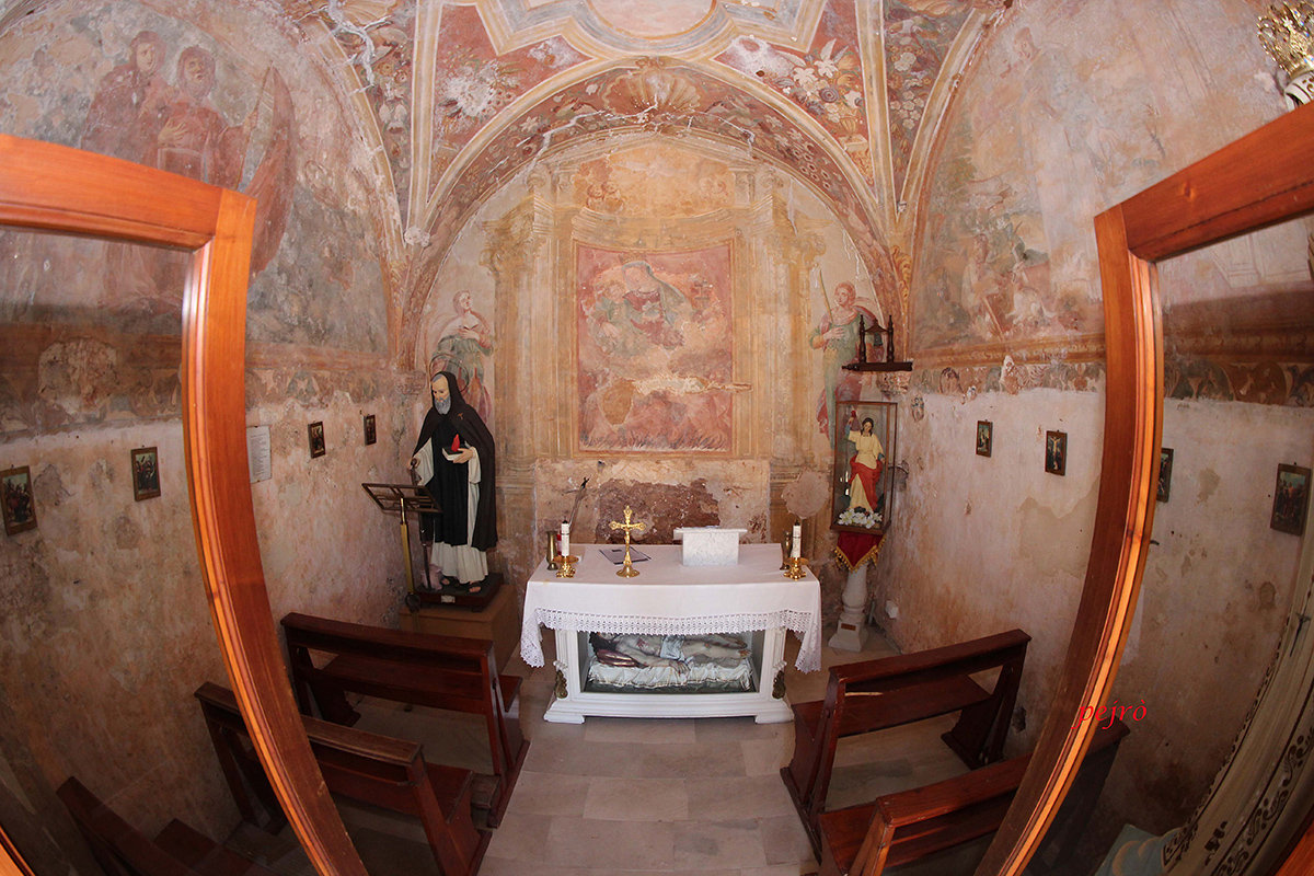 Accanto al tempietto sorsero poi, in epoche successive, cinque edicole votive, la casa del custode, la cisterna e il forno. Recentemente restaurata, è stato tuttavia difficile riportare la chiesa allo stato originario. La chiesa, le arcate e le edicole un tempo erano affrescate con figure di Santi, di Angeli e motivi floreali. Così nei riquadri e nelle lunette, sulla volta a stella e sulle pareti: affreschi eseguiti nel secolo XVIII con colori vividi e bene accostati ma di cui è rimasto poco o niente.